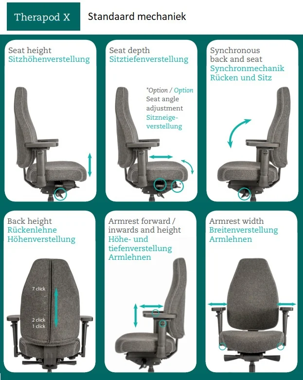 - Therapod® Sense Fit Technology hoge rug, voorzien van hoogte verstelling