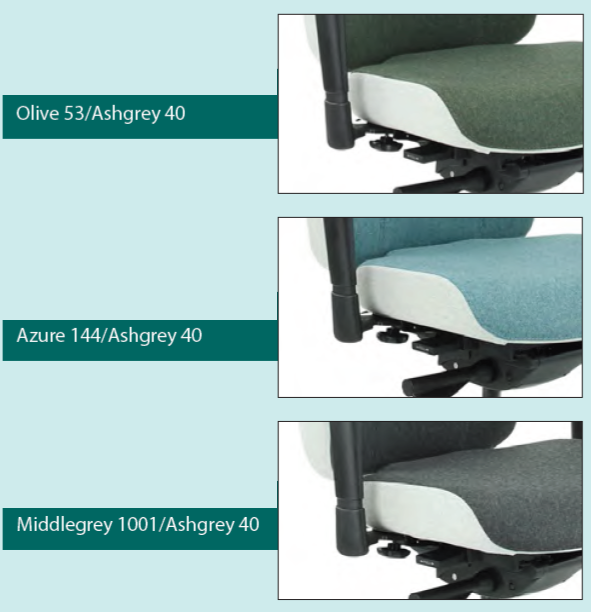 - In 3 kleuren beschikbaar: Azure 144/Ashgrey 40 – Olive 53/Ashgrey 40 – Middengrijs 1001/Ashgrey 40